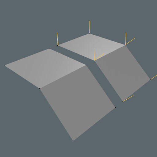 У смежных вершин нормали перпендикулярны своим граням, поэтому идет такой резкий переход затенения. Такие нормали еще называют жесткими нормалями.
