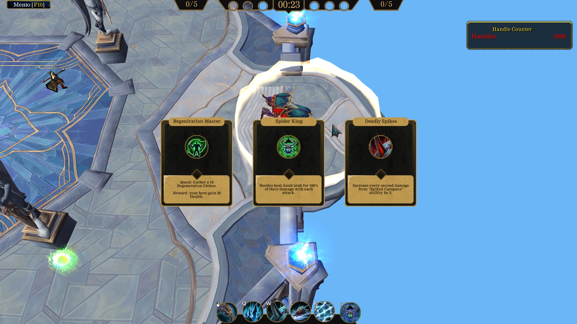 Я начал всерьез размышлять о добавлении системы предметов, которые можно было бы прокачивать по ходу матча. Это потребовало бы очередной глобальной переделки кастомного интерфейса. Появились и новые концепты полей боя с новыми условиями победы — например, захват Семени Мирового Древа (в сеттинге карты это был аналог захвата флага).