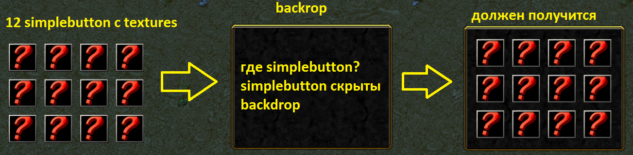 Но тут произошел шок. backdrop их закрыл, а simplebuttons остались внизу. По сути, их не видно. Все перепробовал, чтобы поднять их. И уровень менял, и родителей менял, совал в файл fdf backdrop. Итд. Ничего не помогало.