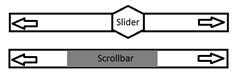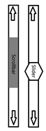Scrollbar (полоса прокрутки) - аналогично как и в Slider. Только вместо ползунка (Slider) используют bar (полосу) для прокрутки значения.