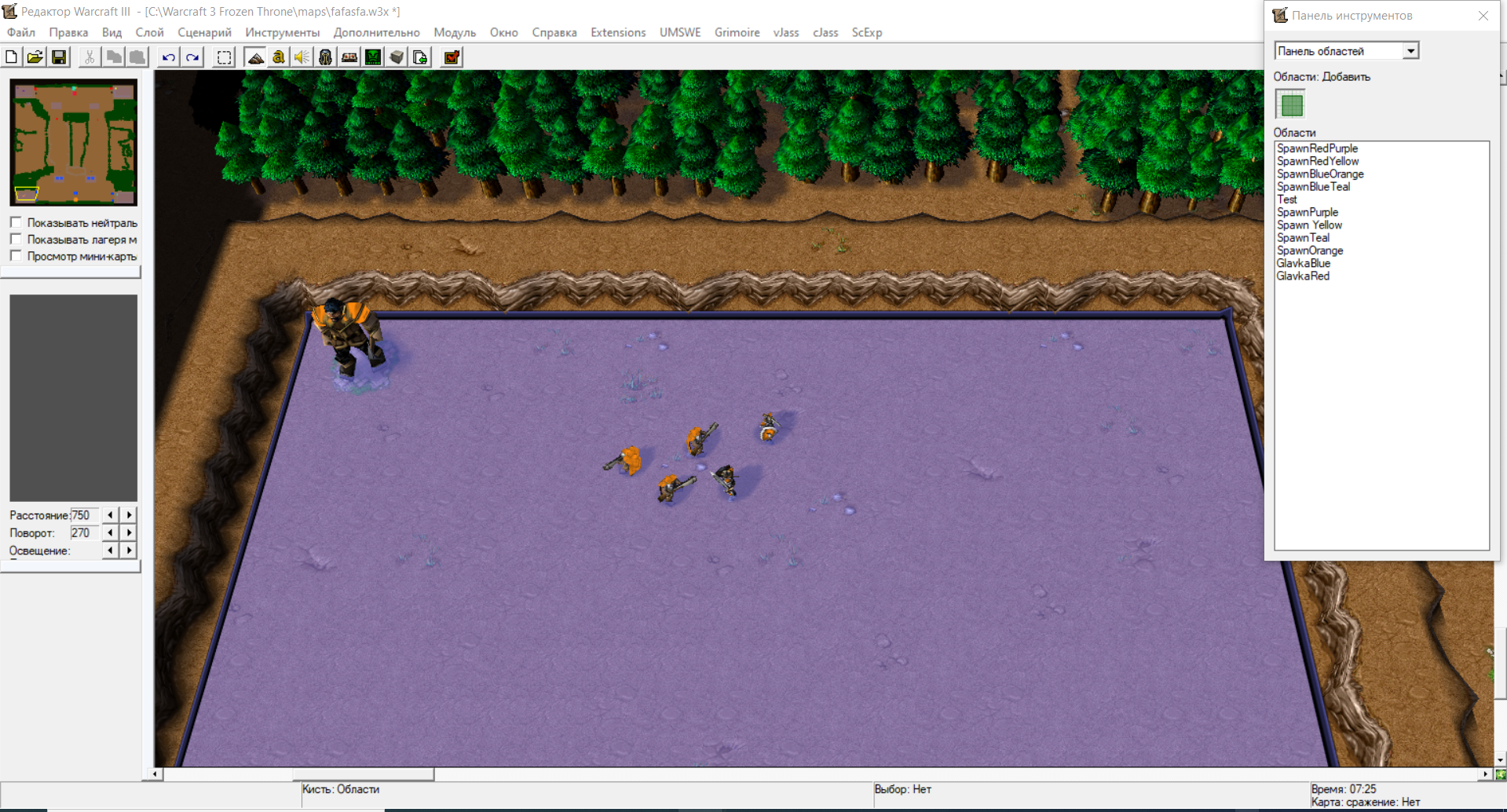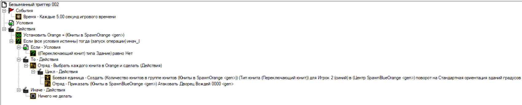 По механике игрок нанимает юнитов,они попадают в группу и должны появляться в другой области и нападать на другую команду.Скрин триггера прилагаю.