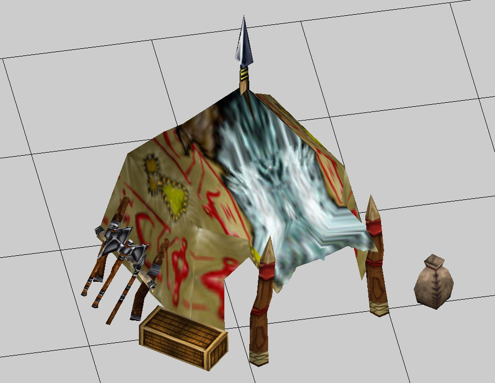 Например, коричневый шатёр нужно чем-то украсить. Например, повесить оружие или щиты.