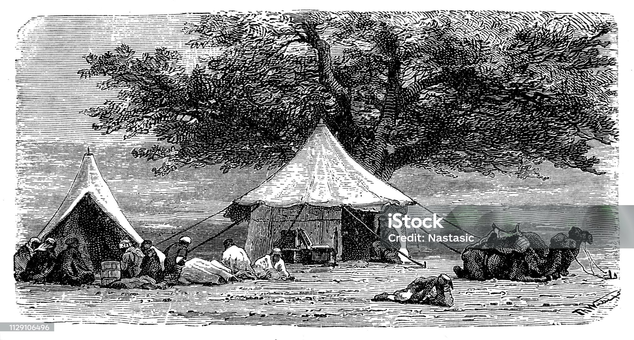 Размышлял о том, откуда кентавры в лагере берут воду. Думал сперва об оазисе, или о пустынном колодце. Но решил, что следует оставить размещение таких объектов на откуп левел-дизайнера. В итоге добавил кувшины с водой около правой палатки. На мой взгляд, это вновь подчёркивает то, что остановка носит временный характер.