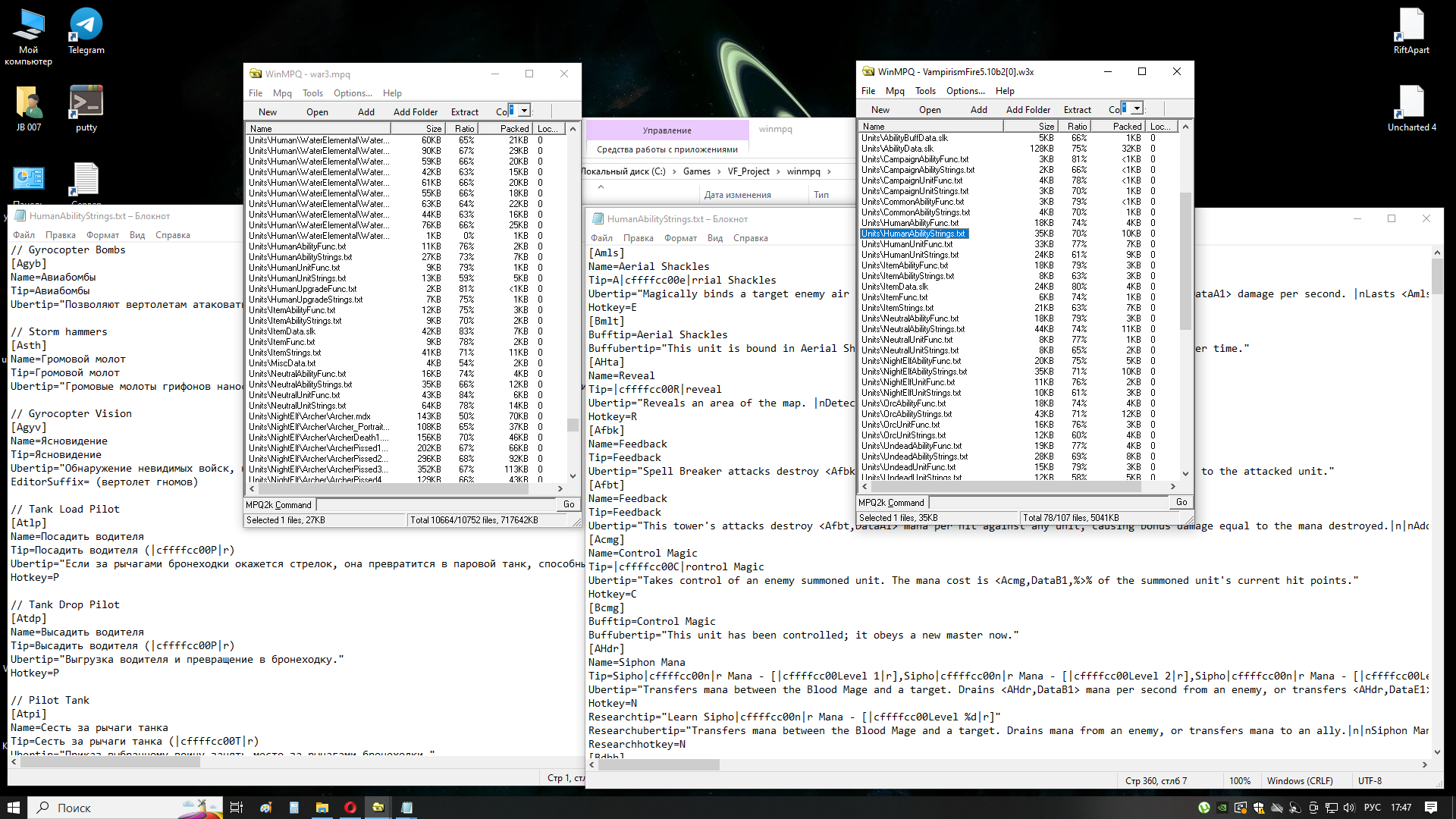 Находишь свой спелл в файлах Варкрафта(архив war3.mpq) в файлах оканчивающиеся на Strings.txt. Пример: HumanAbilityStrings.txt. Extract file в свою папку. Меняешь текст на какой хочешь, цветной не цветной. Задаёшь кнопку, которая будет высвечиваться при подсказках. Меняешь файл по своему усмотрению, что не нужно можешь выкинуть, того не будет в карте. Файл будет заменён на варкрафтовский. Вставляешь этот файл в карту с путём "Units\". И вот скриншоты, чтобы было понятнее.