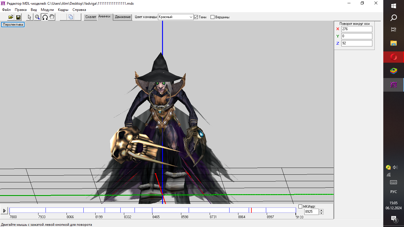 Когда то давно я мечтал создавать собственные модели для варика, но так и не научился от слова совсем. Эта модель, моя попытка собрать вообще все что в моих силах и сделать что -то годное. Я не умел делать анимацию, кости, не знал даже, как прикрепить текстуры к костям. По итогу взял за основу модель Lord of changes, лицо старухи и еще кучу всего от разных моделей, включая одежду баньши.