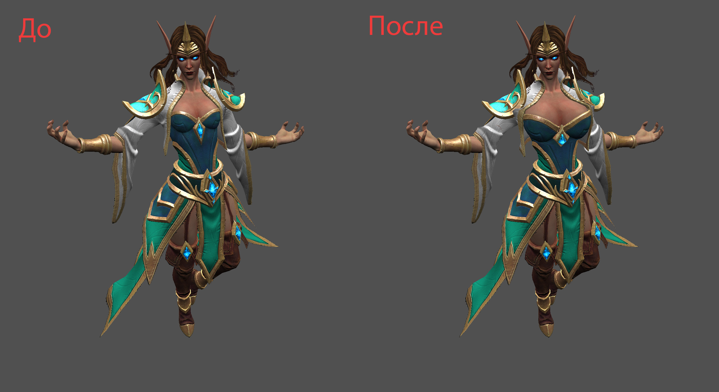 Не я один заметил что разработчики уменьшили размер груди волшебницы в Reforged? Я имею ввиду она стала меньше чем была в Classic версии. Мне захотелось исправить это инклюзивное недоразумение и сделать то, что должно было быть изначально. Версия кровавого эльфа прилагается.