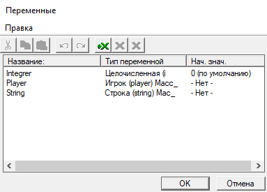Дальше воспользуемся горячими клавишами, чтобы зайти в Переменные (Ctrl + B), либо найдем ее на панели инструментов в триггерах.