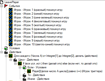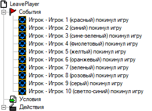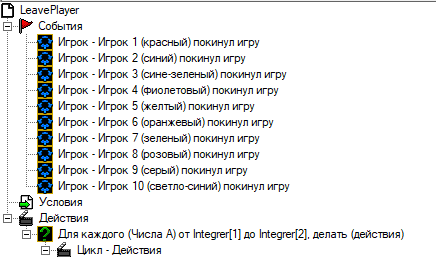 Сразу же создадим 10 событий для каждого игрока, что игрок покинул ее.
