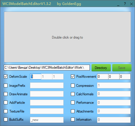 - TextureFile: Извлекает все необходимые текстуры модели из папки (или вышестоящей папки) и копирует их в папку "Work" в директории инструмента.