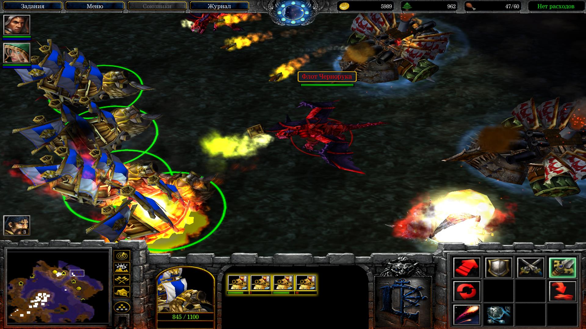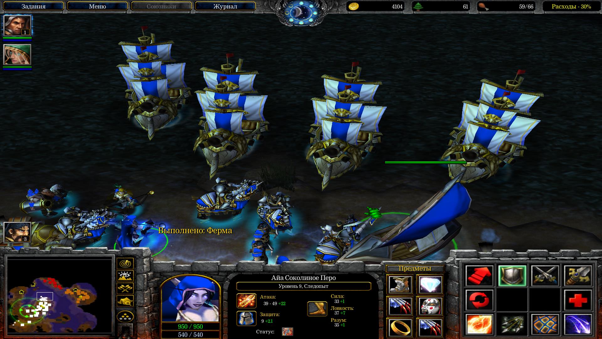 В общем, у нас есть два рудника и мы должны максимально быстро создать армию. Рекомендую действовать через паровые машины и рыцарей. Как только армия и улучшения будут готовы, идём сносить первую базу. Не забываем использовать ульту героя паладина, она поможет пробивать защиту лагерей Орды. Разрушили первую базу врага? Молодцы, теперь быстро и решительно отстраивайте ратушу и казармы с мастерскими ближе к порталу. Отстроили армию? Отсылайте всех в портал и юзайте ульту паладина. Если не удалось пробить за один заход все, что там скопилось, не отчаивайтесь. Спамьте новое войско, если вы его быстро соберёте, вторую атаку второй лагерь за порталом уже не выстоит. Не забывайте, что у вас есть Айя, которая поможет со своим мультишотом с лёгкостью расправиться с кораблями и драконами.