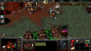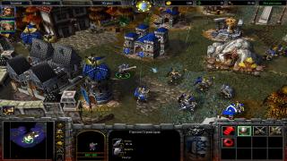 На месте разрушения второй базы орды, строим ещё одну ратушу. Идём по суше и пробиваем отряды врагов, доходим до последнего укрепления орков. Дело в том, что механика ии такая: когда мы разрушали их базы, они сваливали на другой участок карты с рудниками. К сожалению, этот участок не перехватить заранее. В общем и целом, можно уже купить дирижабли, и просто напросто навысаживать паровые машины, героев и рыцарей к ним на базу, но так будет сложнее разрушить все. Мне было легче расчищать путь героем и уничтожать здания врага войском, которое находилось сзади героев.