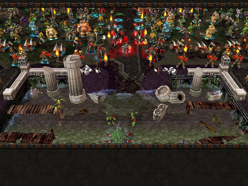 Дальше нужно строить несколько казарм и идти к маленькому мостику. Дальше нужно на этом мостике танковать Утером и выжигать бесконечные войска противников магом героем. Но перед этим на той стороне мостика нужно снести башни и катапульты. Строить как можно скорее очень много баллист и не забывать построить на своей стороне приличное количество башен для того чтобы лучше отражать атаки воздушных отрядов врага.