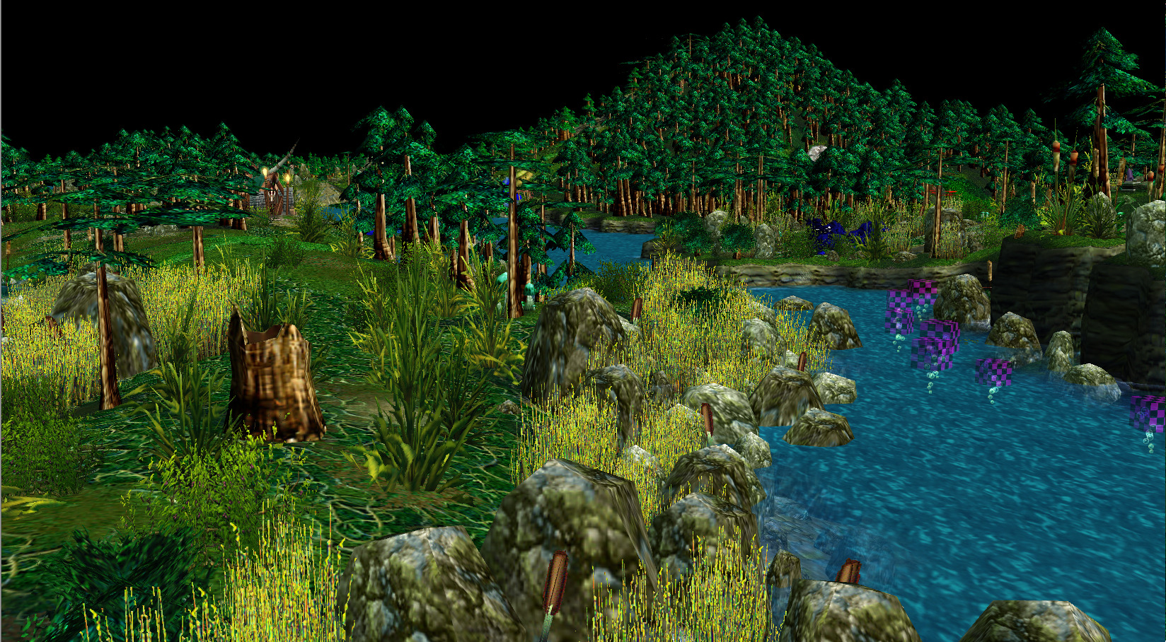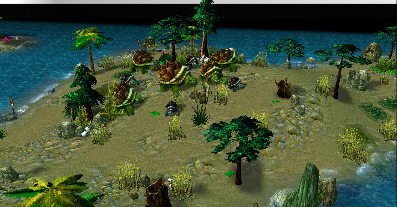 В зеленых дебрях живут многочисленные стаи волков, в юго-восточной части пасутся ящерицы, а северо-западное побережье острова облюбовали черепахи. Путь к лагерю врага долог и опасен, но местные гоблины всегда готовы помочь за плату.