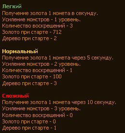 *Изменения в режиме "легко" добавлено дерево и золото.
