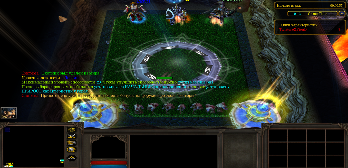Несмотря на свою простоту, карта имеет много креативных особенностей. Во-первых, Вы в начале игры сами решаете какие из параметров Вашего героя будут повышаться с уровнем быстрее, а какие медленнее (всего герою добавляется по 8 очков параметров на уровень). Например, Вы можете сделать так, чтобы герой получал с каждым уровнем по 3 очка силы, 3 очка ловкости и 2 интеллекта, или же можете заставить его получать по 4 очка силы и 4 ловкости, но не получать интеллект. Решайте сами! В игре часто падают книги параметров, поэтому герою, который редко пользуется магией, можно не повышать интеллект, так как поднимая попадающиеся книги интеллекта, он спокойно наберет небольшое, но достаточное его количество.