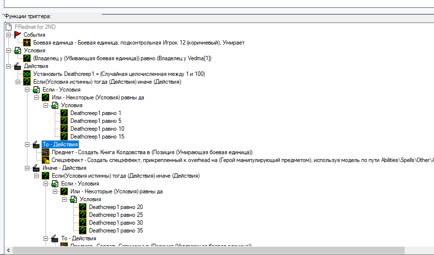 Вот двухэтажный триггер с условием если* if Если в одном из условий действие сработает, то мне нужно, чтобы оно больше не проигрывалось. Удалить либо условие либо действие в этой колбасе( этаже) Если я поставлю выключить триггер в этом действии, то выключится весь триггер. Теперь понятнее объяснил, мне либо условие удалять, либо действие. ( вариант поставить логическую 1 -0 не предлагать)