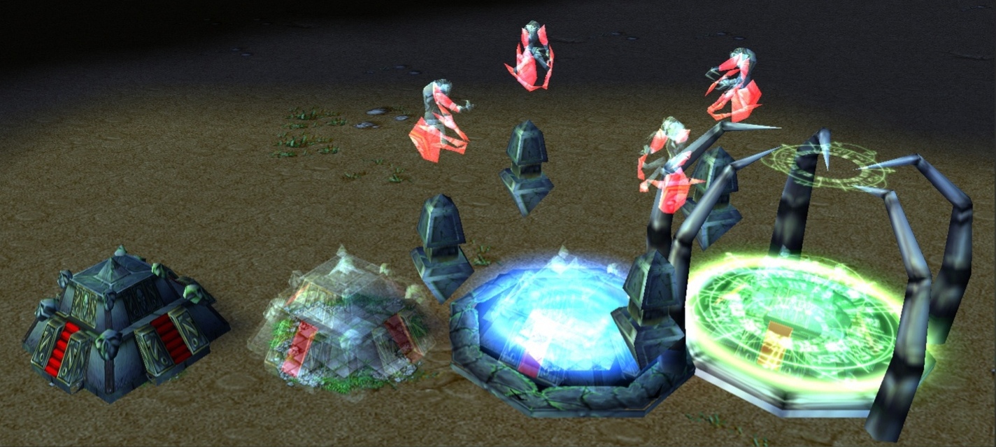 Стандартный Зиккурат Неруба, добавлен тимколор, анимация строительства (материализация), так-же в архив .rar добавлены модели с уже встроенной анимацией постройки Нежити, и анимации постройки Нерубов сделанную мной, данная анимация так-же присутствует в архиве.