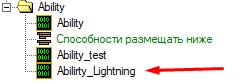 Воспользовавшись тем, что редактор собирает код в том порядке, в котором он там размещён, создадим папку для способностей: