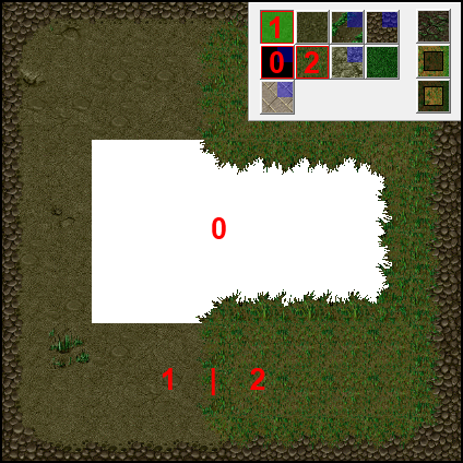 Тайлом «срезал» прямоугольный участок и использовал балки и ещё несколько декораций. Получилось вполне интересно. Если даже вход вглубь, под землю.