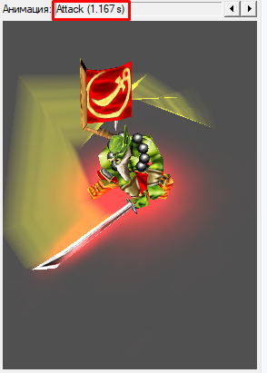 Можно предположить, что на любой анимации атаки эффект активен - нам это и нужно. Затем смотрим кадры анимации одной из нужной: