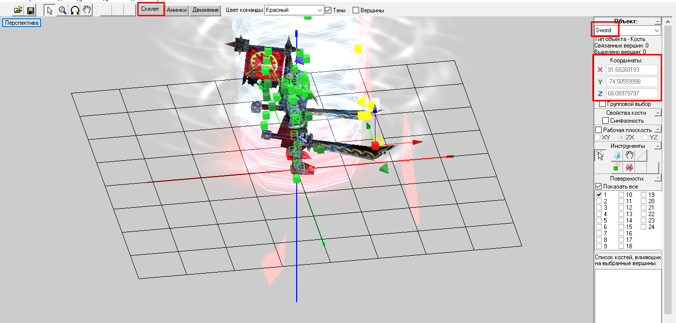 В моём случая, я вытаскиваю модель из архива и открываю её в редакторе моделей. Нас интересует анимации, при которых эффект активен: