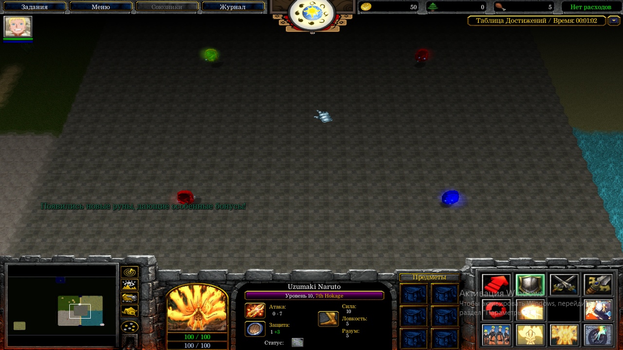 - На центральной области, каждую минуту появляются руны, дающие особые бонусы.