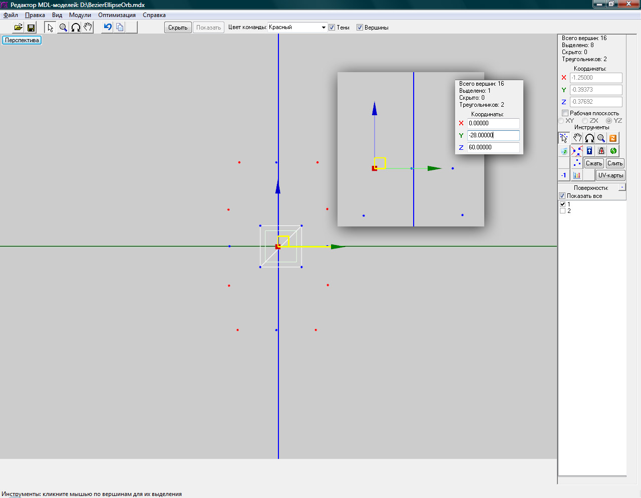 После того, как вы сделали нужную вам кривую, просто на глаз прикиньте координаты направляющих (их точек), у меня это были координаты по осям Y и Z. Если вы затрудняетесь это сделать, можно попробовать создать временные вершины на этих местах прямо в Mdlvis'е и посмотреть их координаты (2.0.6)