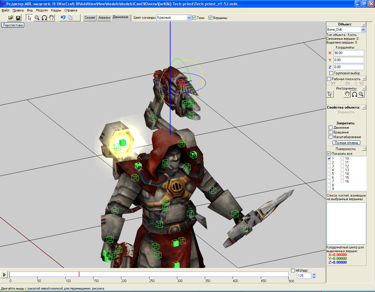 Мой техножрец тоже не обойдётся без глобальных анимаций. У него будет постоянно вращаться бур на механической руке, а в Death этот бур будет скрыт и заменён на неанимированный.