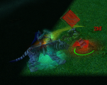Посмотрим на «постоянную невидимость» с другой стороны – со стороны противника. В карте доступна команда “-potm”, чтобы отдать приказ герою синего игрока применить Звездопад. Интересным в этом опыте является тот факт, что эффект будет заметен для другого игрока, хотя самого героя не будет видно (если только у вас не будет камня ясновидения). Чтобы нанести ей какие-то повреждения или остановить заклинание, придется применять способности ориентируясь на расположение эффекта.