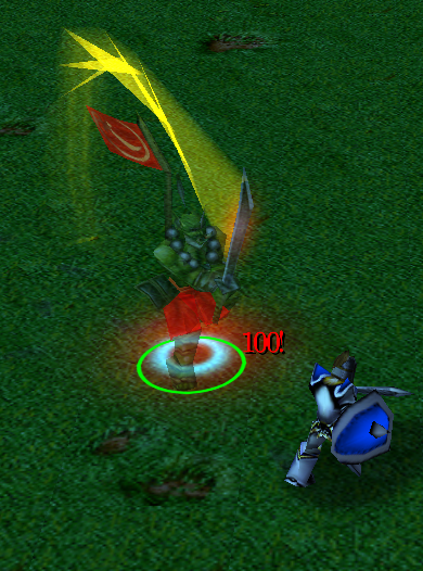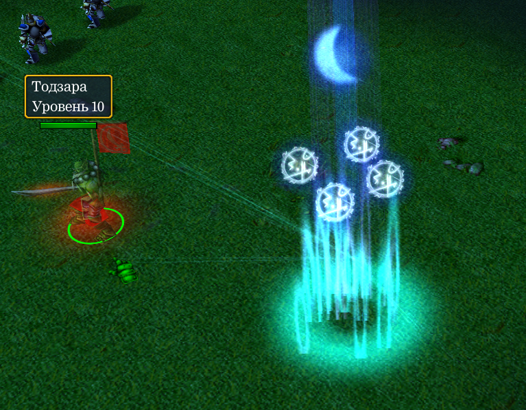 Посмотрим на «постоянную невидимость» с другой стороны – со стороны противника. В карте доступна команда “-potm”, чтобы отдать приказ герою синего игрока применить Звездопад. Интересным в этом опыте является тот факт, что эффект будет заметен для другого игрока, хотя самого героя не будет видно (если только у вас не будет камня ясновидения). Чтобы нанести ей какие-то повреждения или остановить заклинание, придется применять способности ориентируясь на расположение эффекта.