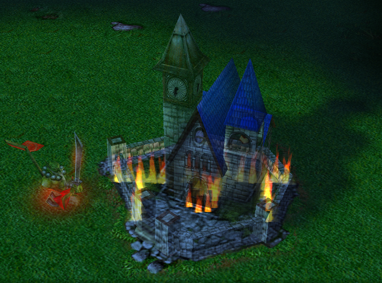 Способность также унаследовала неприменимость к зданиям, что является небольшим минусом, НО она с ними прекрасно работает (не отображается лишь эффект прозрачности, но можно сделать и его триггерно; также здание появляется, если оно покинет поле видимости юнита, который его однажды разведал (не обязательно увидел)). На карте-примере вам представляется возможность поиска и уничтожения вражеской невидимой крепости.