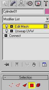 Выделим модель, и в списке модификаторов найдём edit mesh. Затем под Selection выберем Plygon красный квадрат.