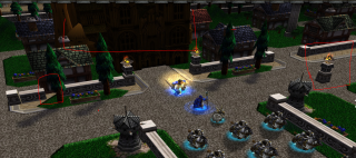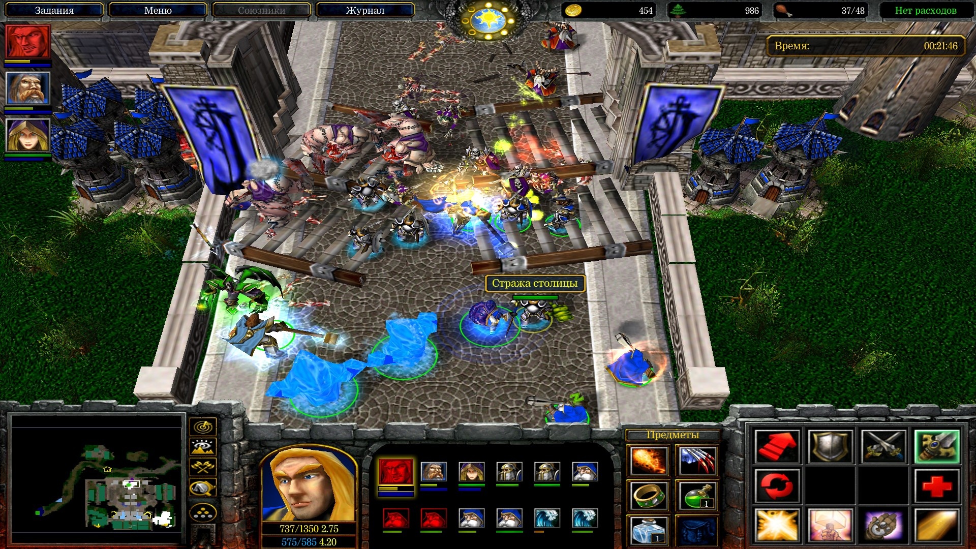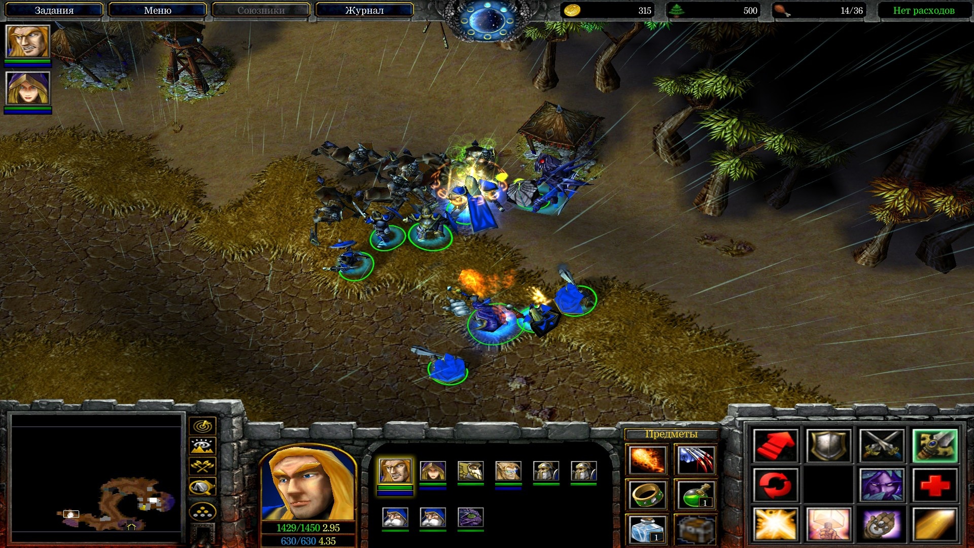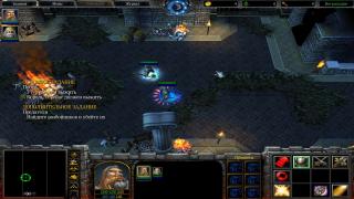 В первой главе один лагерь нежити (фиолетовый) отстраивает войска в зданиях, а другой при существующей базе (оранжевый) создаёт их через триггер в определённой точке. При этом нам противостоят немалые вражеские отряды высоком уровне сложности, а сам компьютер действует адекватно.