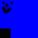 Так начнём с текстурки. Warcraft использует альфа канал (это как бы дырка в шкурке через которую виден цвет команды). Будем делать в Photoshop-е. Сначала решим какая будет модель сделаем простенькую модель человечка (палка + палка + огуречик). Текстурку тоже простую. В Photoshop-е создадим текстурку 128х128. Зальём её синим цветом, нарисуем один чёрный квадрат, ну и смайлик .
