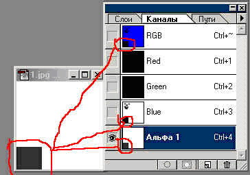 Появится альфа канал, зальём его белым. И нарисуем точно такой же чёрный квадрат как и там.