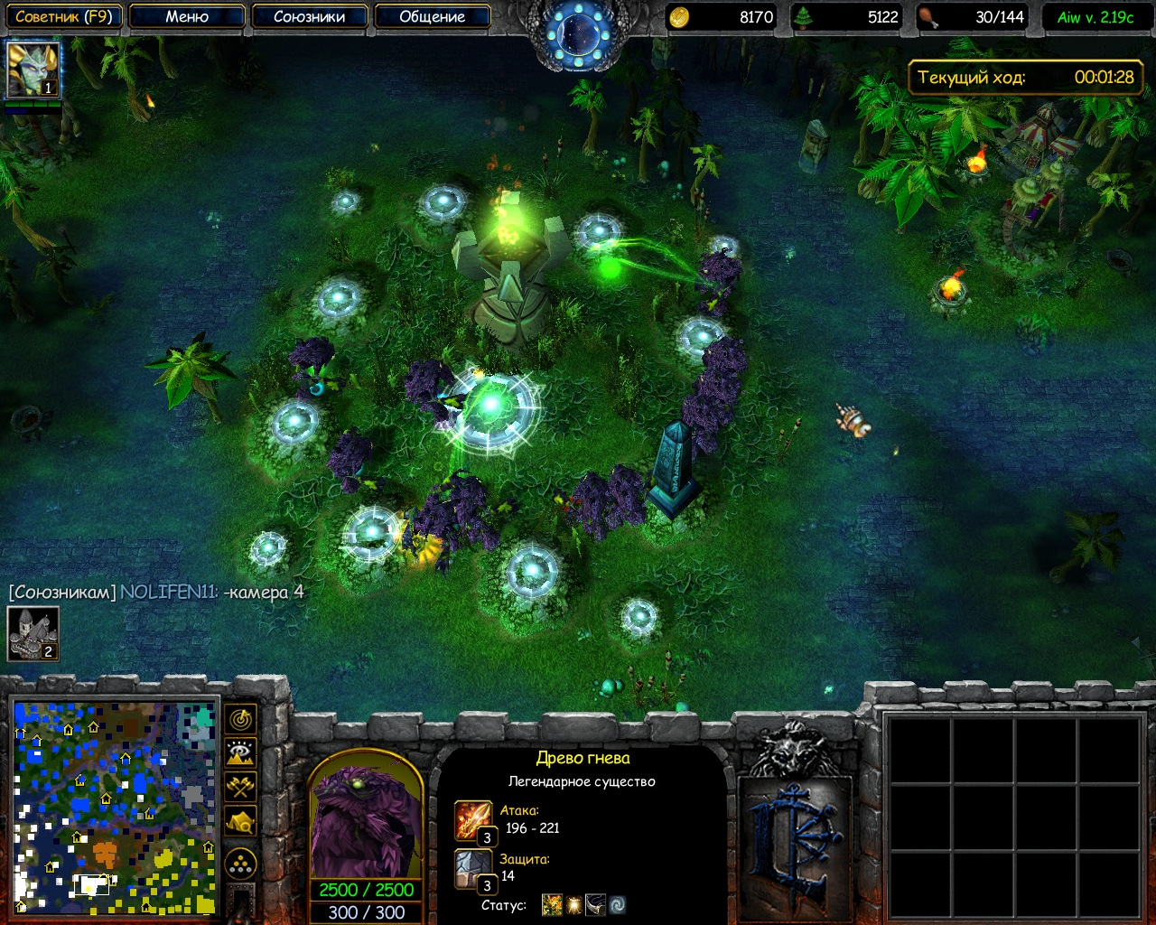 Это не окончательная версия карты. Хотя 95% работы уже сделано. Теперь подправлю некоторые ошибки, "некрасивости", есть идея дать героям разные способности (в настоящее время все герои имеют 4 одинаковых способности: "Призыв телохранителей (своей расы)", "Воодушевление", "Аура лидерства", "Неуязвимость"). И конечно необходимо сделать выбор расы через таверну в начале игры.