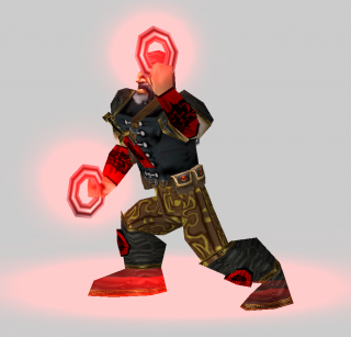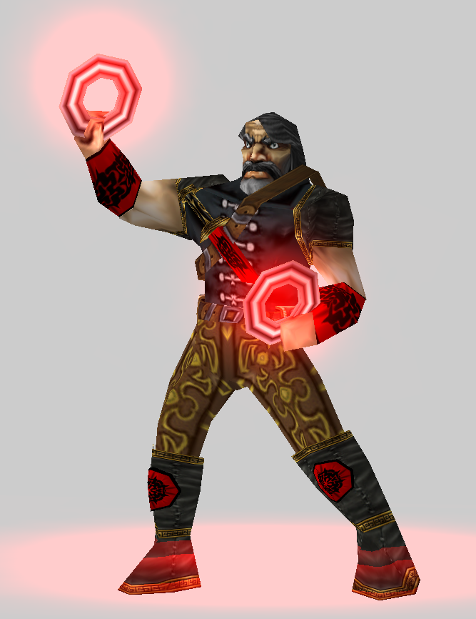 В бою может метать их по очереди, так и обрушить сразу два, сбив с толку нападающих.