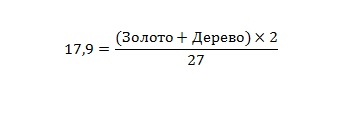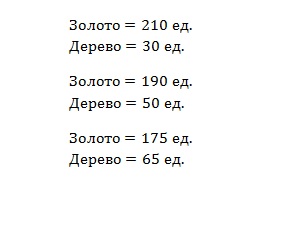 Две констансты формулы это 2,2 и 0,02. Подставив в формулу свои значения мы получим фактическую стоимость, т.е. еще одно уравнение, которое необходимо решить. Время строительства и пища - это те характеристики, которыми мы можем управлять, т.е. ставить собственные значения. А золото и дерево получается при обыкновенном разложении их суммы на две части, как вам угодно. Например у вас вышла сумма ресурсов 230, а значит есть множество вариантов для её разложения 210 и 20, 180 и 50, 140 и 90 и т.д. Само число фактической стоимости у меня колебалось от 3 до 30, но вполне может и выйти за эти рамки. Это просто значит, что данный юнит довольно силен и из него получится имба.