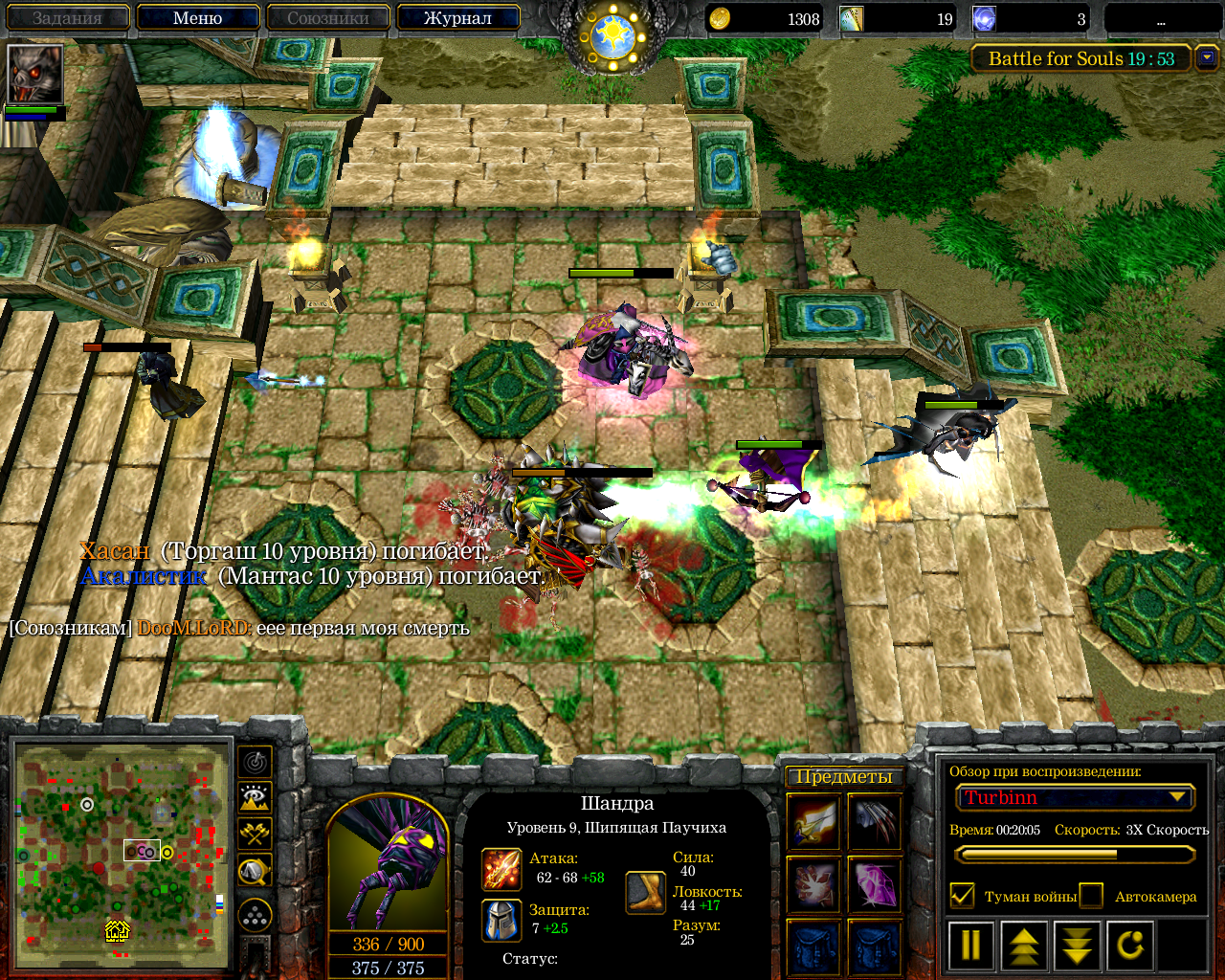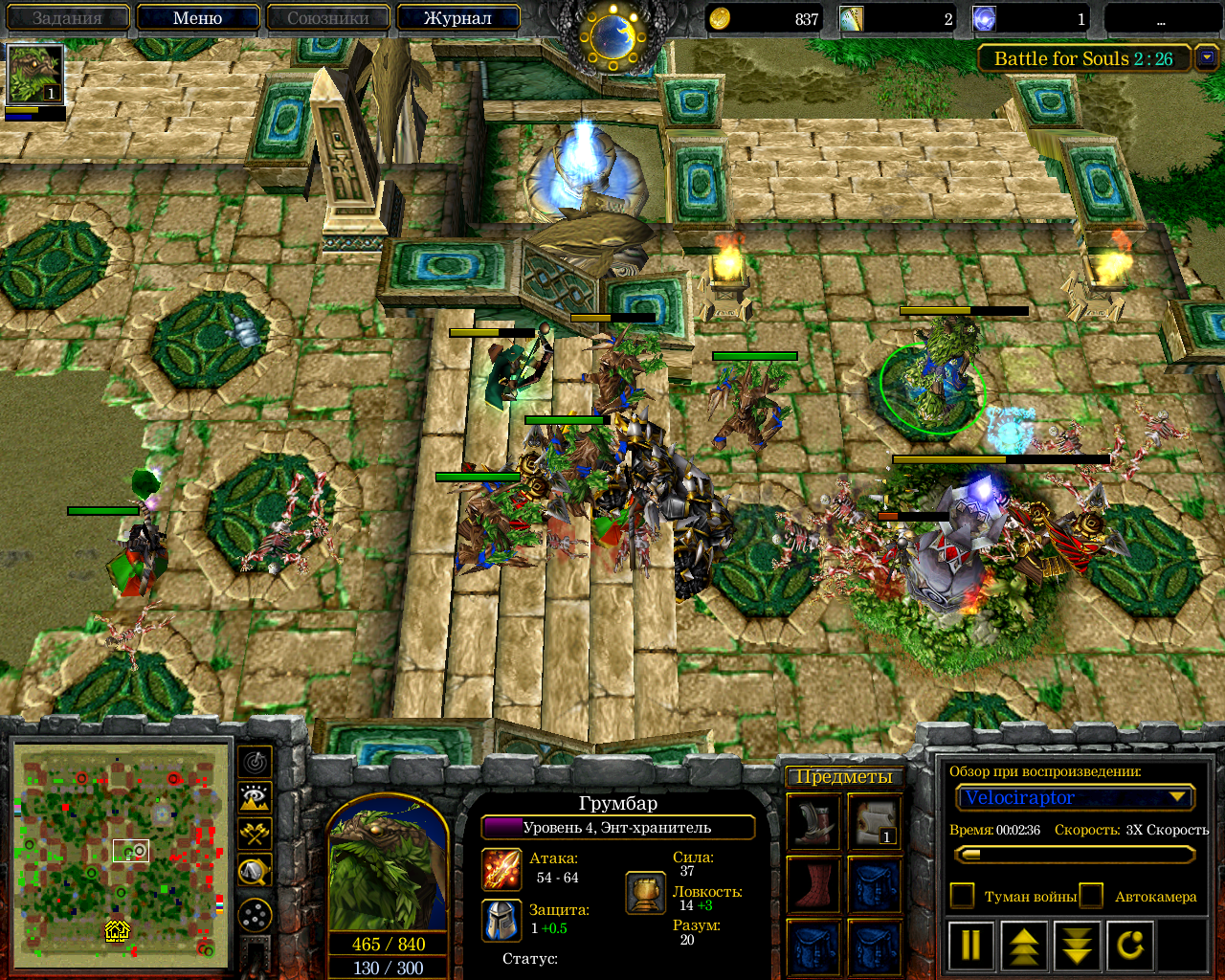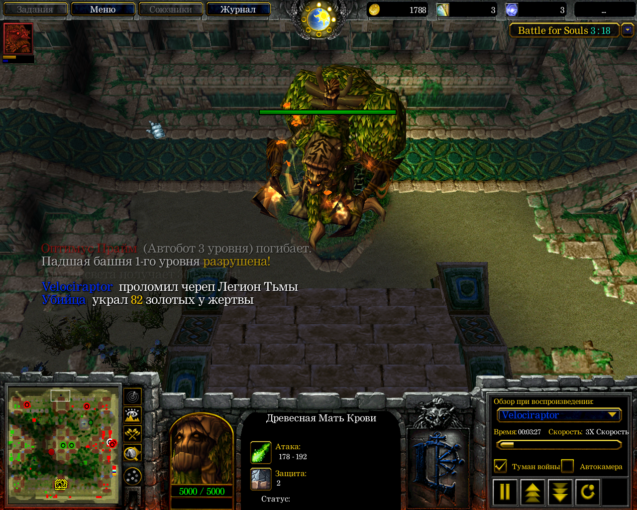 - Продолжается оптимизация кода, переход на JASS, уничтожение действий в периодических таймерах, действий на событие "unit атакован".
