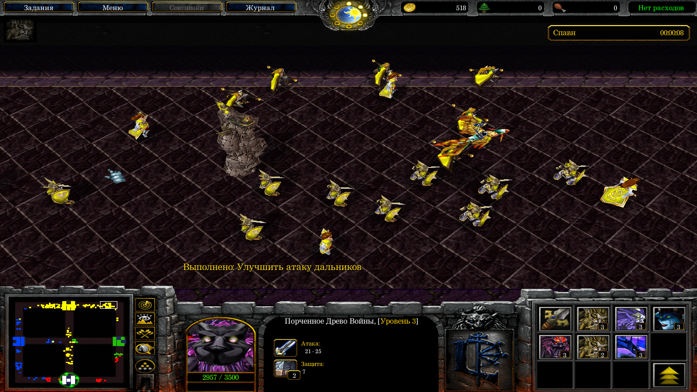 Порча: осадная катапульта не имеет улучшений. Когда у эльфов ката бьет 1150 и урон под 100, у порчи ката бьет на 700 с уроном 28. Кстати, скорость передвижения каты порчи прибавить надо. А то плетется сзади. У летунов наоборот, скорость снизить. Ибо быстро прилетают, огребают и помирают.