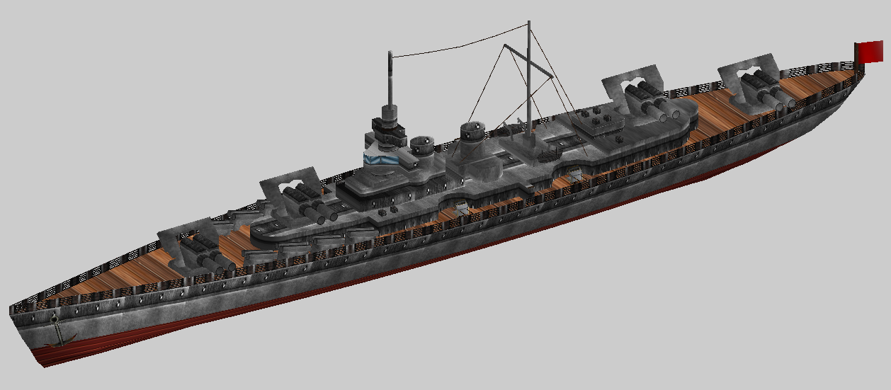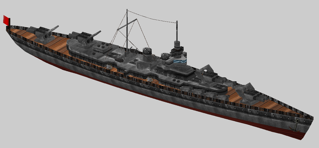 Военный линкор, способный вести огонь из четырех корабельных двуствольных пушек.