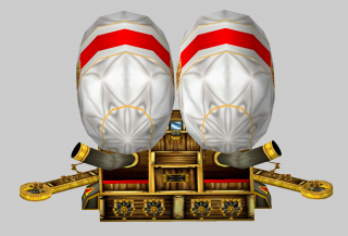 Может использовать в бою две пушки, три гарпунные установки и два отсека для сброса бомб.