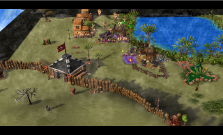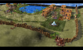 Есть зачатки неплохого восточного поселения, но этот частокол, спам камнями, опять ошибка с оазисом и абсолютно непонятные области, которые непонятно ради чего существуют с обилием однотипных декораций.