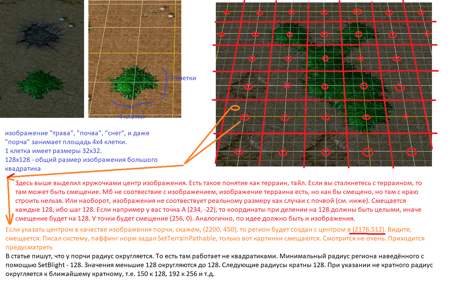 SetBlightPoint тоже работает и странно, и бажно. При создании порчи создаётся регион 512 на 512. Центр расположен как показано