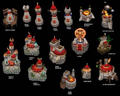 Большой пак для организации целой расы Кровавых Эльфов. Здесь есть все нужные здания: ратуша, ферма, казарма и даже лавка предметов. В пак зданий Кровавых Эльфов входят: