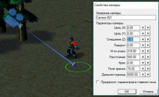 - Можно еще поворачивать камеру. Rotation Source (источник поворота, на jass boolean inheritOrientation) - true (Поворот боевой единицы)/false (По умолчанию). По умолчанию = 0 град, Поворот боевой единицы - на самом деле это никакой не поворот боевой единицы, в гуи неправильно перевели. Это берут за основу поворот текущей камеры, ее можно изменять. И относительно ее вращают камеру. У вас всегда будет повернут на этот угол. Возможно можно изменять триггерно, и камера примет другой поворот.