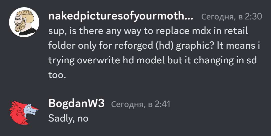 У фикса есть один недостаток: модель меняется сразу в обеих версиях графики игры (classic SD и reforged HD). А поскольку HD модели не могут быть отображены в SD шейдере, то данная модель буквально станет невидимой. Соответственно, при переключении на SD графику (а также просто при необходимости отключить эту модификацию) данный файл следует удалить из папки retail, или просто переименовать.