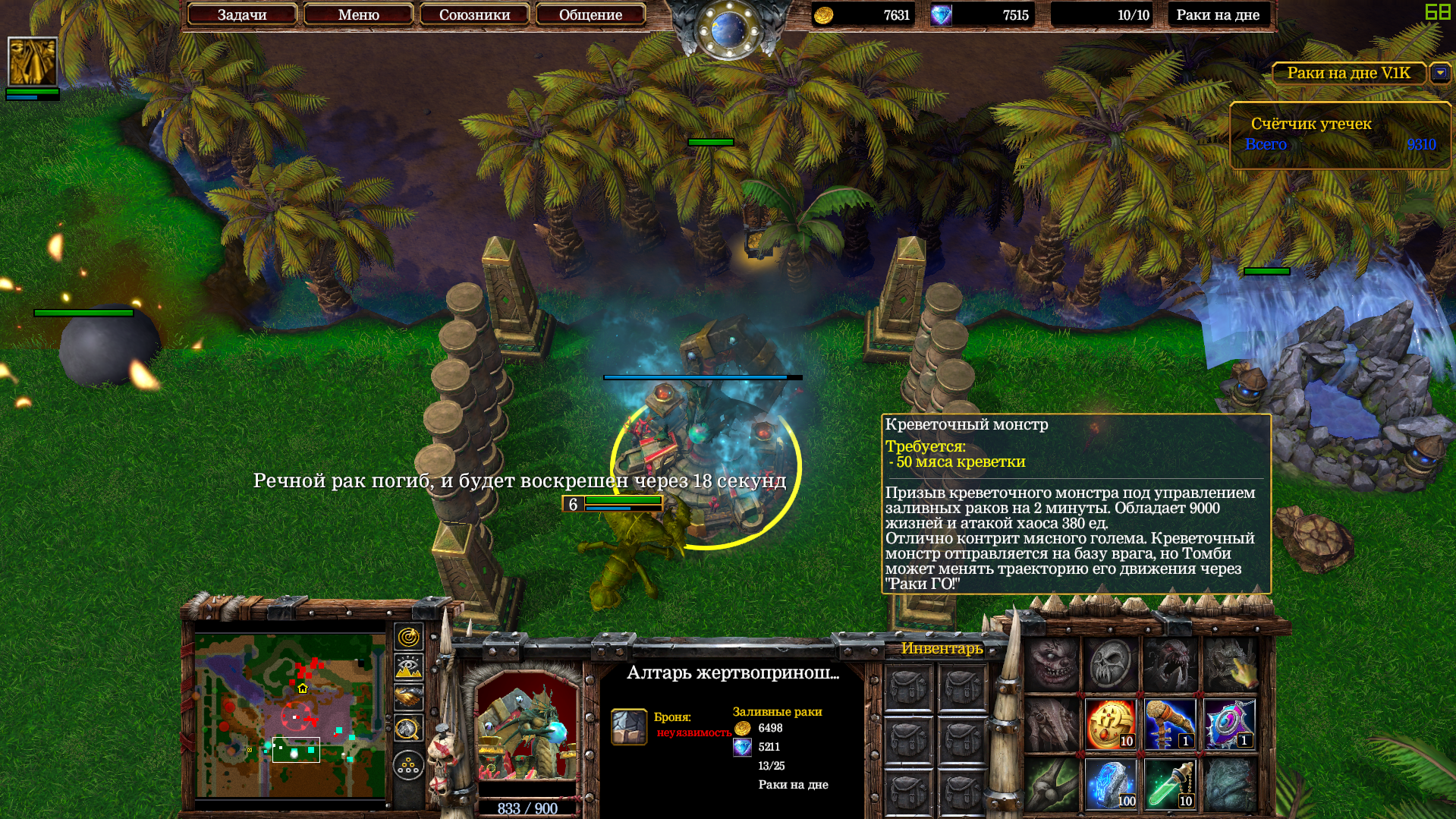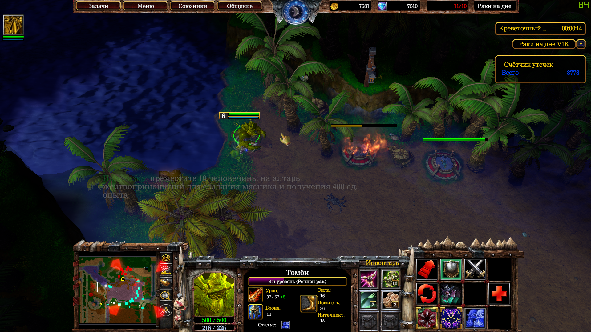 Из людей выпадает человечина, а из союзников креветочное мясо, необходимо собирать эти ресурсы, они нужны для крафта предметов и призыва существ на божественном алтаре.