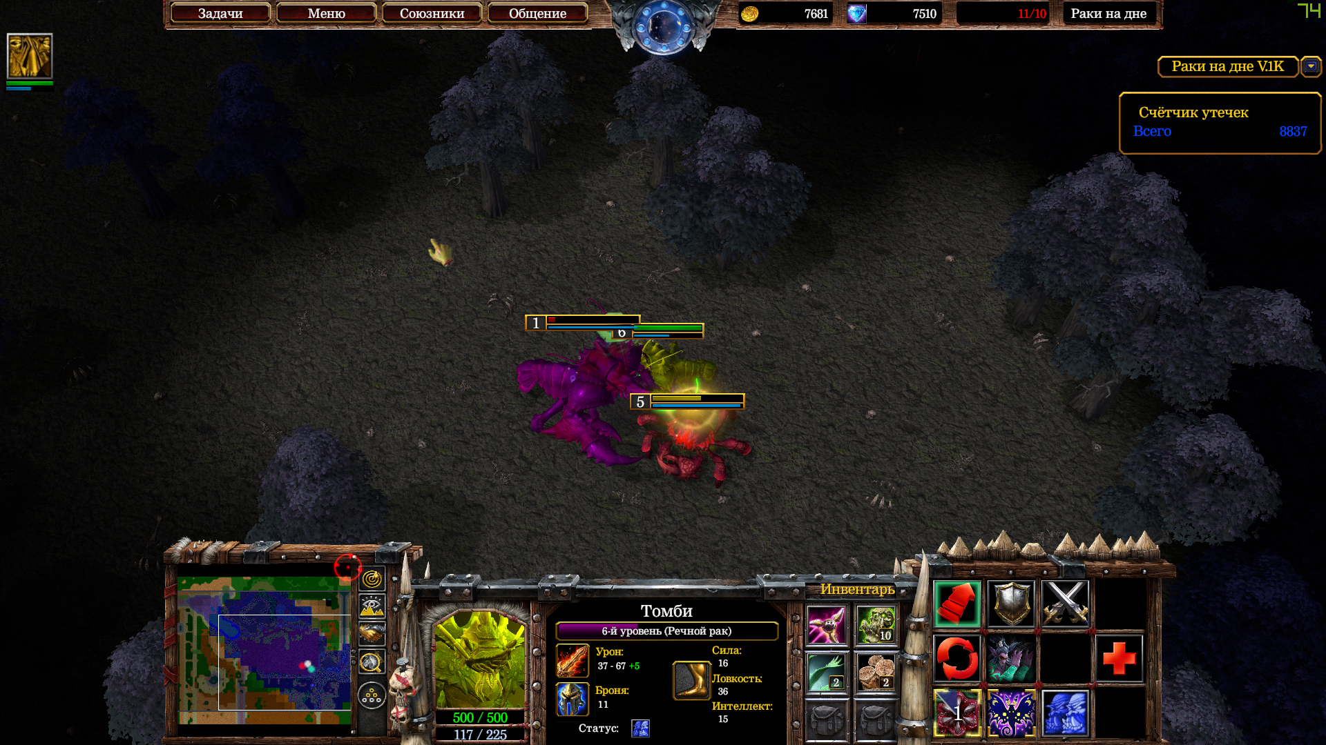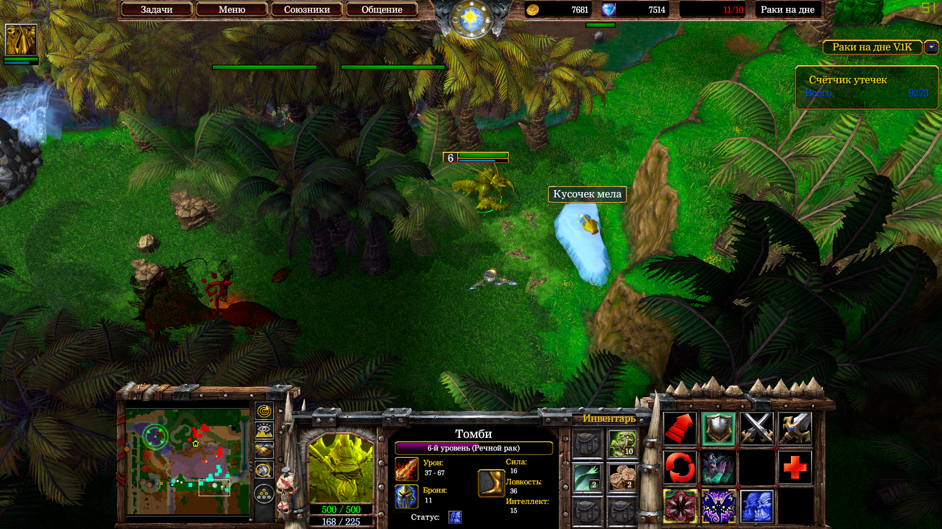 Ловкий пресноводный рак, теряет ловкость при смерти, или же зарабатывает тонную её, убивая своих врагов, делает сражающихся клонов из хитина