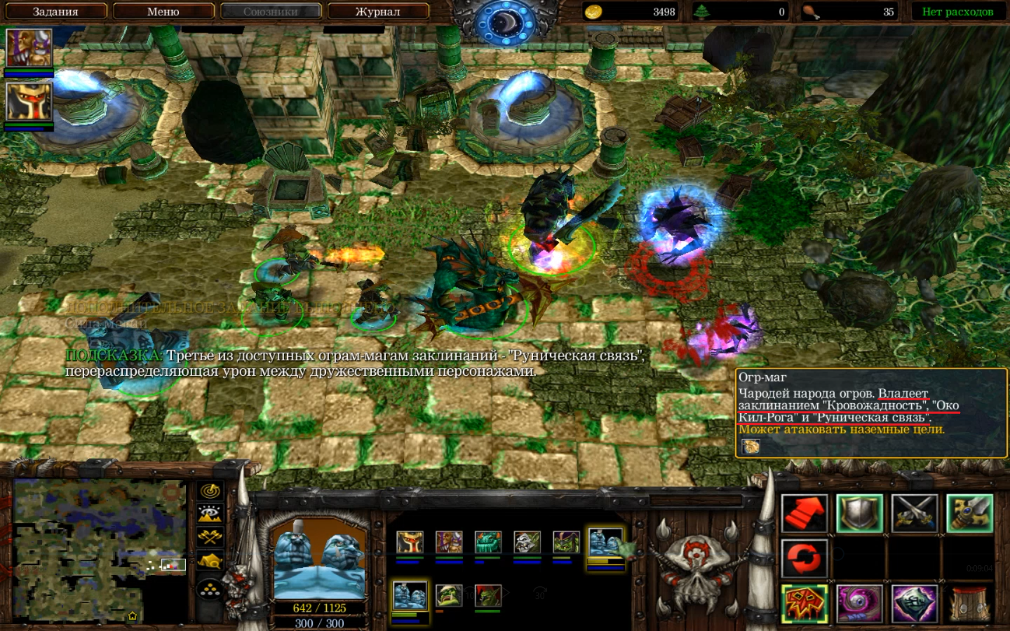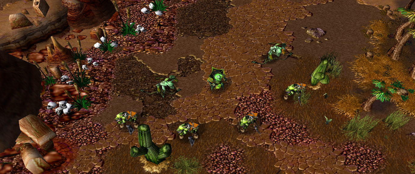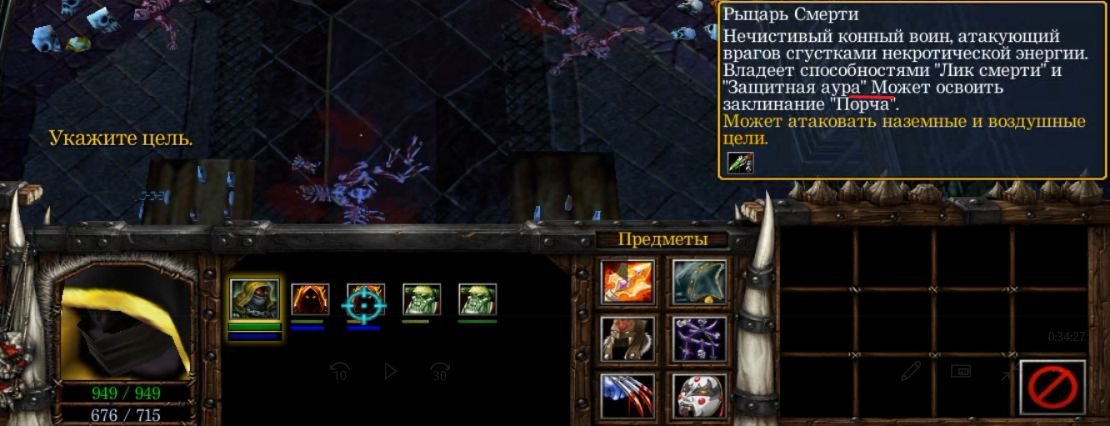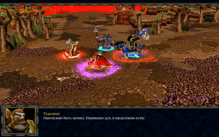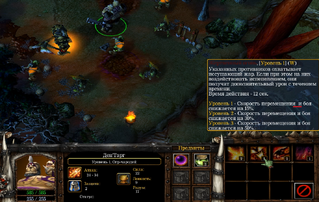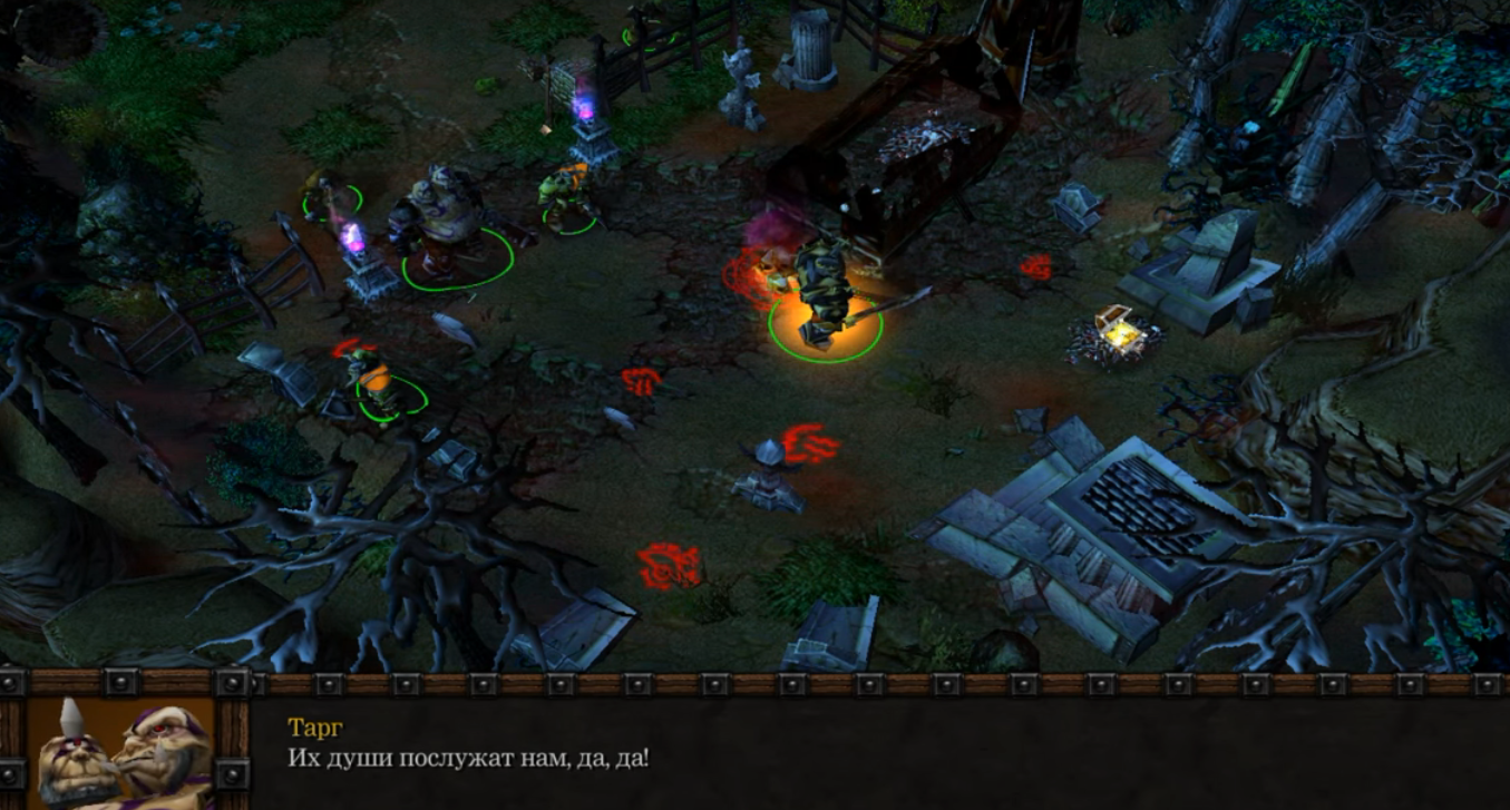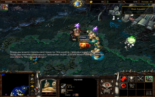 После небольшого перемещения по карте и нескольких сражений с людьми и нейтральными существами я нашёл небольшой союзный отряд орков, из которого ко мне перешли два некролита, способных оживлять скелеты из мёртвых воинов.